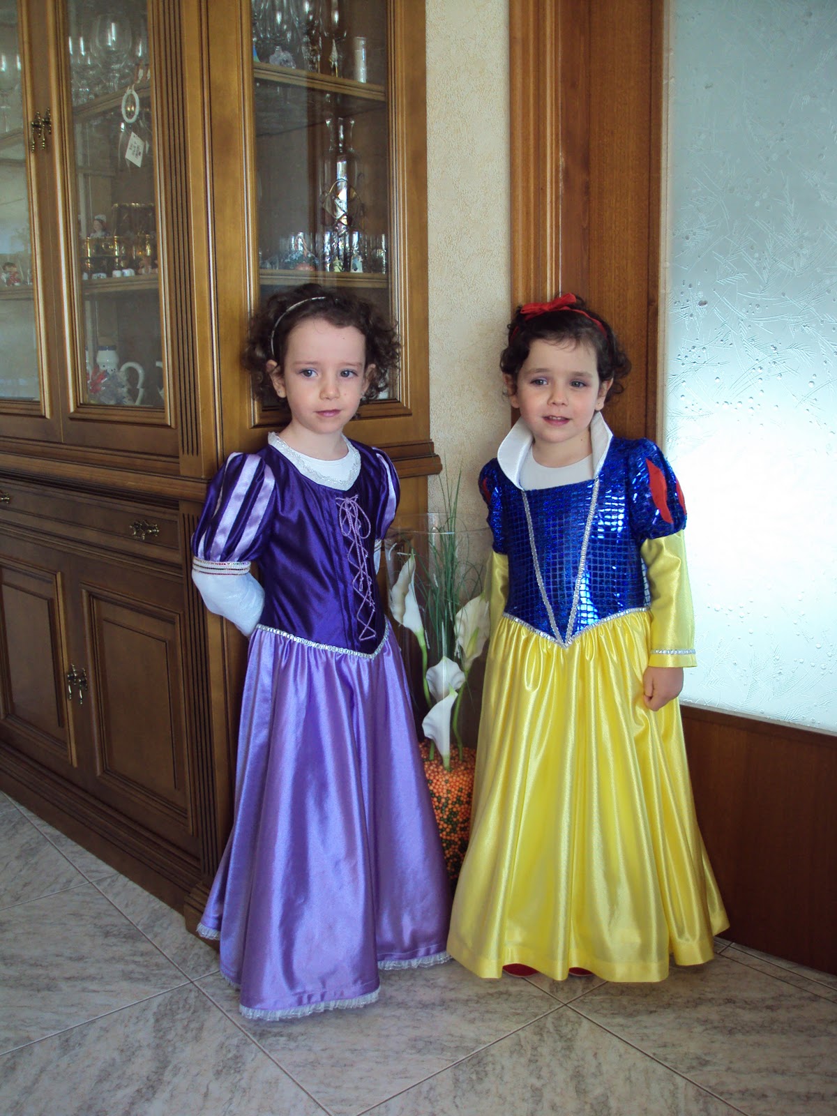 Para empezar, se vistieron de pincesas : Blancanieves y Rapunzel ... ésto de disfrazarse les va.